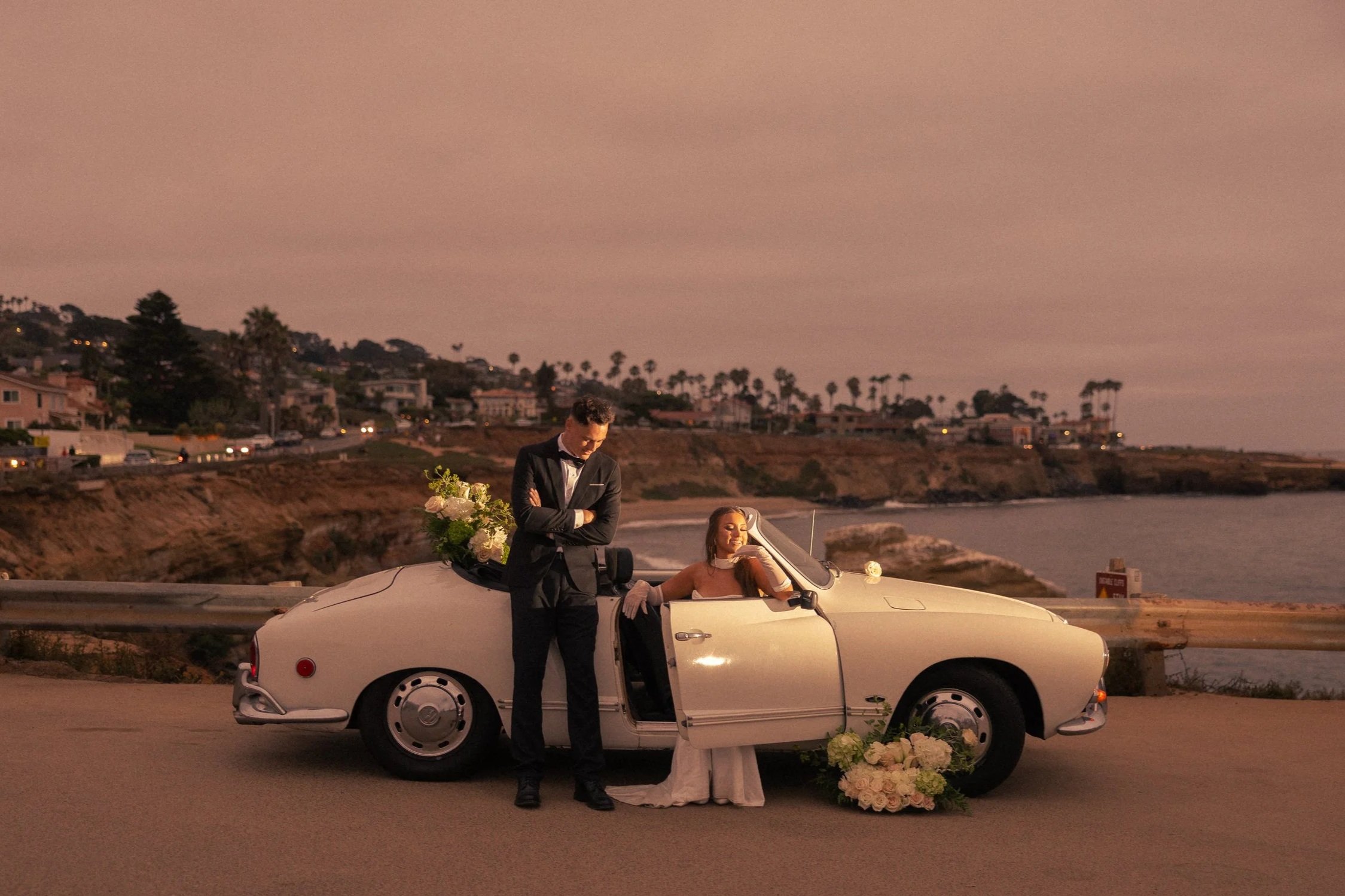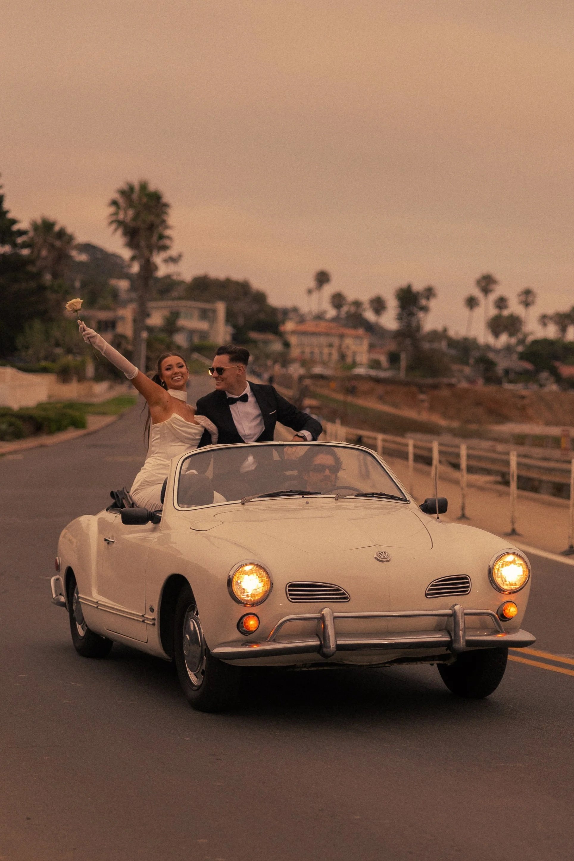 With its sleek 2-door design and off-white finish, our Karmann Ghia shines like a Californian classic—the perfect statement piece for your next photoshoot, special event or getaway car to celebrate in timeless style.